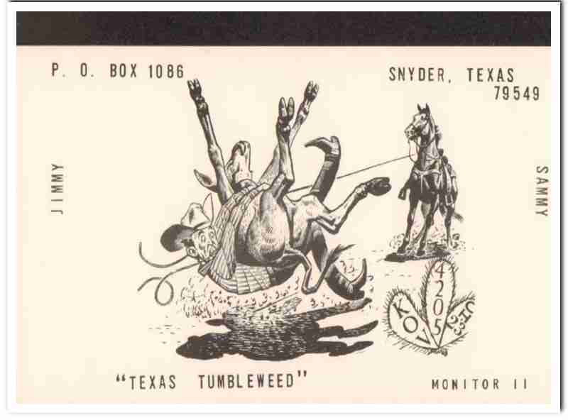 KOV-4205 Jimmy Sammy Snyder Texas 1960s Vintage Postcard CB QSL Card