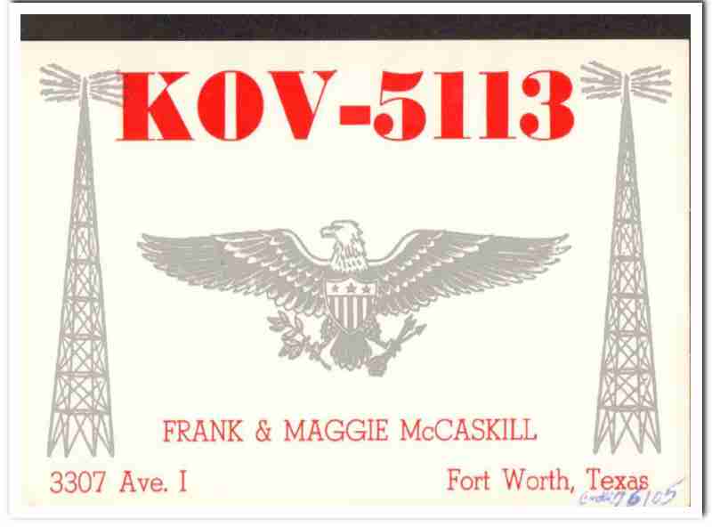 KOV-5113 Frank McCaskill Fort Worth TX 1960s Vintage Postcard CB QSL