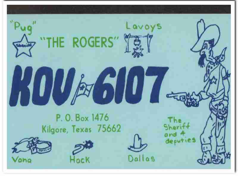 KOV-6107 Pug Rogers Kilgore Texas 1960s Vintage Postcard CB QSL Card