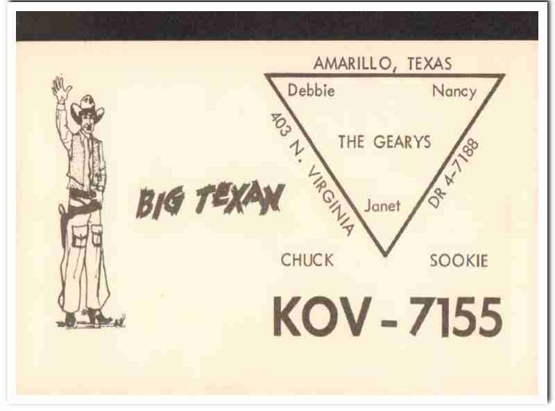 KOV-7155 Chuck Geary Amarillo Texas 1960s Vintage Postcard CB QSL Card