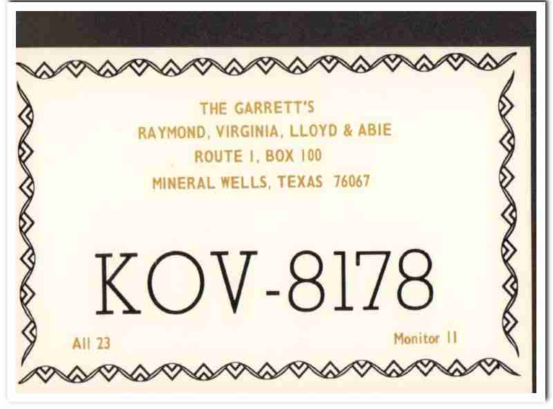 KOV-8178 Garrett Mineral Wells Texas 1960s Vintage Postcard CB QSL 1