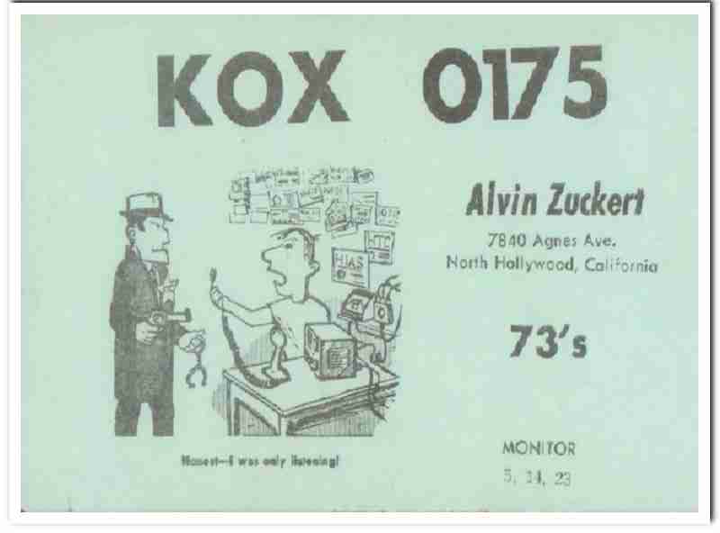 KOX-0175 Alvin Zuckert Hollywood CA 1960s Vintage Postcard CB QSL Card