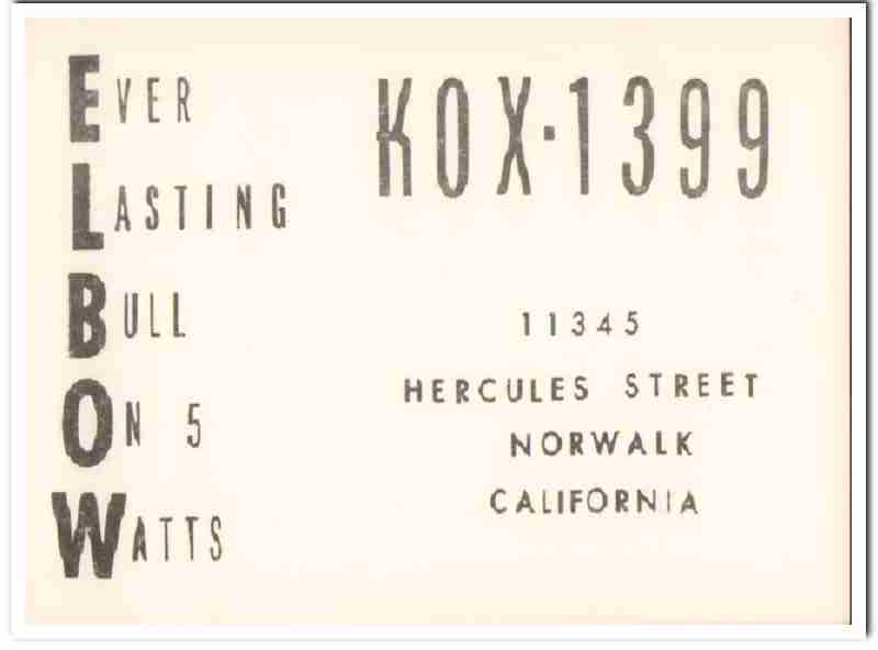 KOX-1399 Elbow Norwalk California 1960s Vintage Postcard CB QSL Card