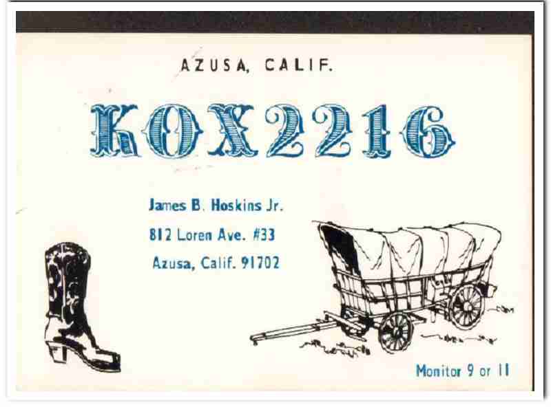 KOX-2216 James Hoskins Azusa CA 1960s Vintage Postcard CB QSL Card