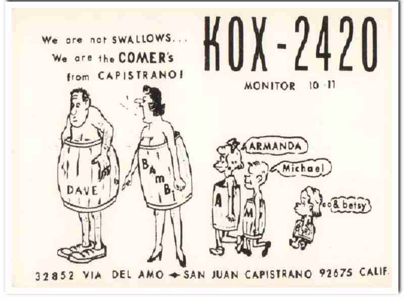 KOX-2420 Dave Comer San Juan Capistrano 1960s Vintage Postcard CB QSL