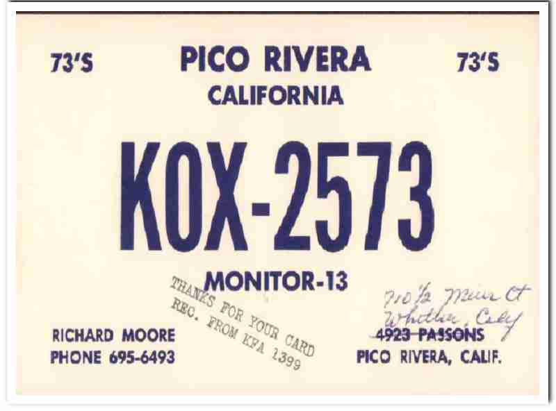 KOX-2573 Richard Moore Pico Rivera CA 1960s Vintage Postcard CB QSL 2