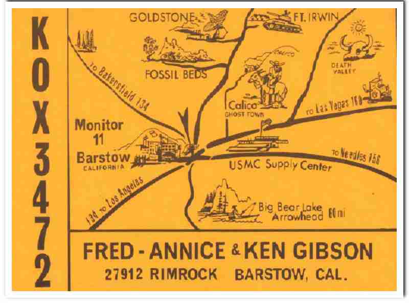 KOX-3472 Fred Gibson Barstow CA 1960s Vintage Postcard CB QSL Card 1
