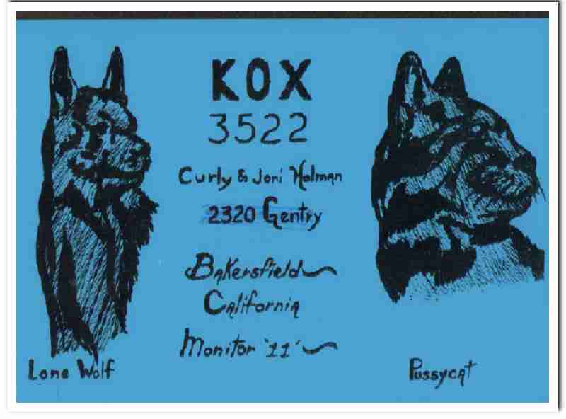 Original QSL postcard from the mid to late 1960s.This unused card was sent from CB radio station: KOX-3522. Was issued to Joni and Curly Holman, at 2320 Gentry Street, Bakersfield, California. His CB handle was Lone Wolf, and her CB handle was Pussycat. Card is blue with black text. An updated address written on the back is at 704 El Sereno Drive. During the 1920s and 1930s, amateur ham radio operators adopted the practice of two-way exchanging of QSL postcards, to confirm their radio contact, with a report of reception. QSL cards got to be known as wallpaper, commonly used to decorate the walls of their radio equipment room. During the 1960s, CB citizen band radio became popular, and the practice of exchanging QSL cards to confirm radio contacts was enjoyed by many with this new hobby. Today, these cards are very collectible and look great matted and framed.