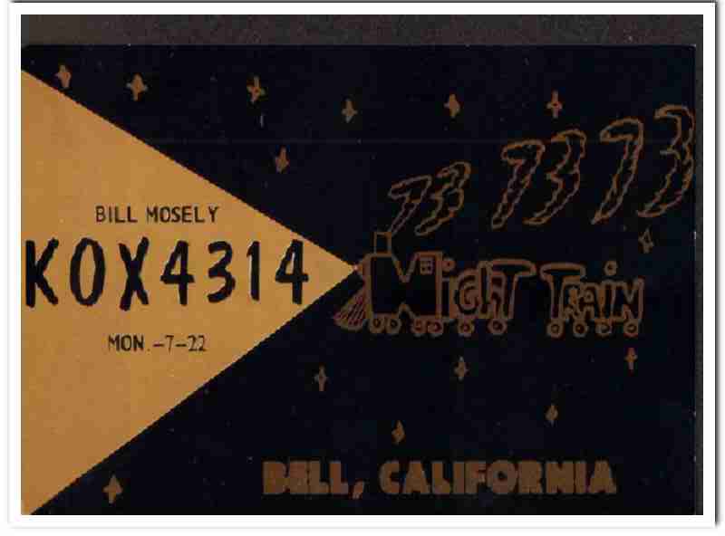 KOX-4314 Bill Mosely Bell CA 1960s Vintage Postcard CB QSL Card