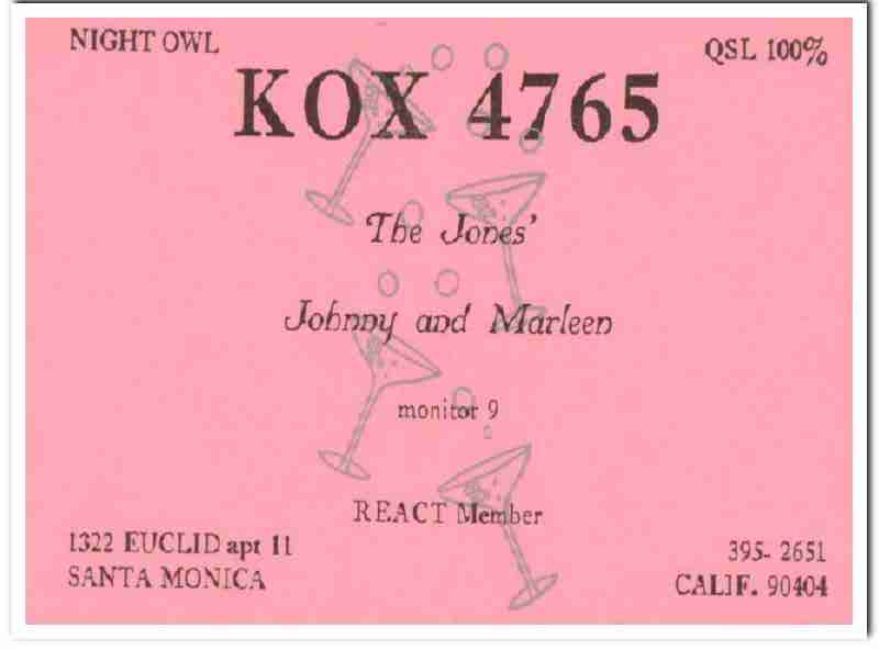 KOX-4765 Johnny Jones Santa Monica CA 1960s Vintage Postcard CB QSL 3