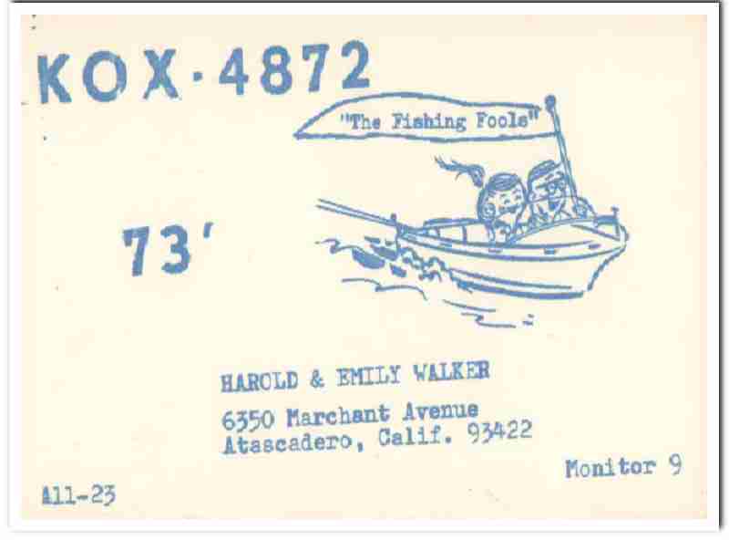 KOX-4872 Harold Walker Atascadero CA 1960s Vintage Postcard CB QSL 1