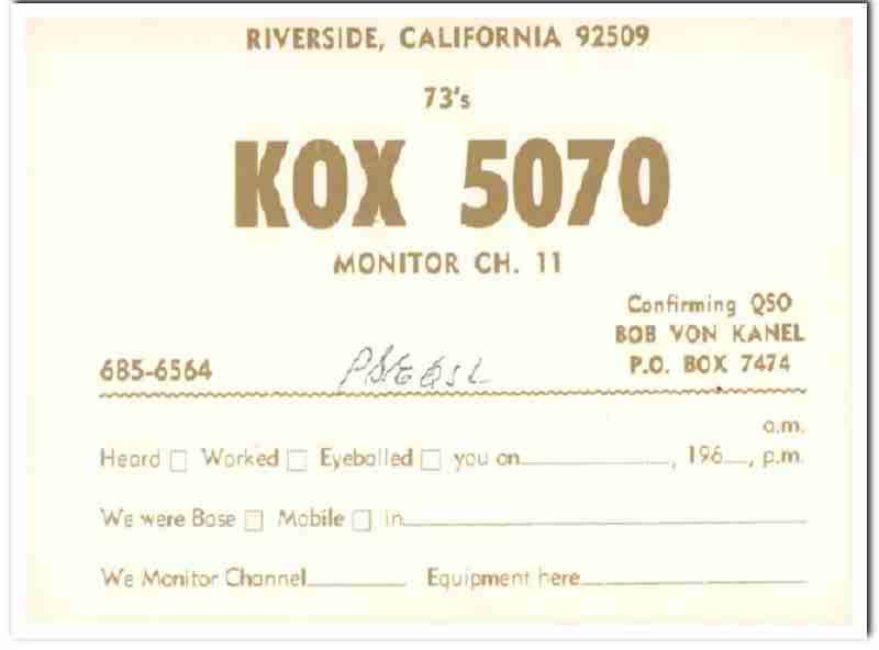 KOX-5070 Bob Von Kanel Riverside CA 1960s Vintage Postcard CB QSL