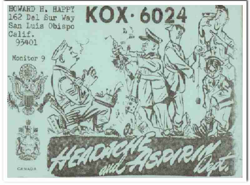 KOX-6024 Howard Happy San Luis Obispo CA 60s Vintage Postcard CB QSL 1