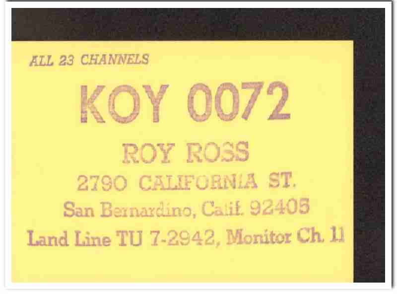 KOY-0072 Roy Ross San Bernardino CA 1960s Vintage Postcard CB QSL 1