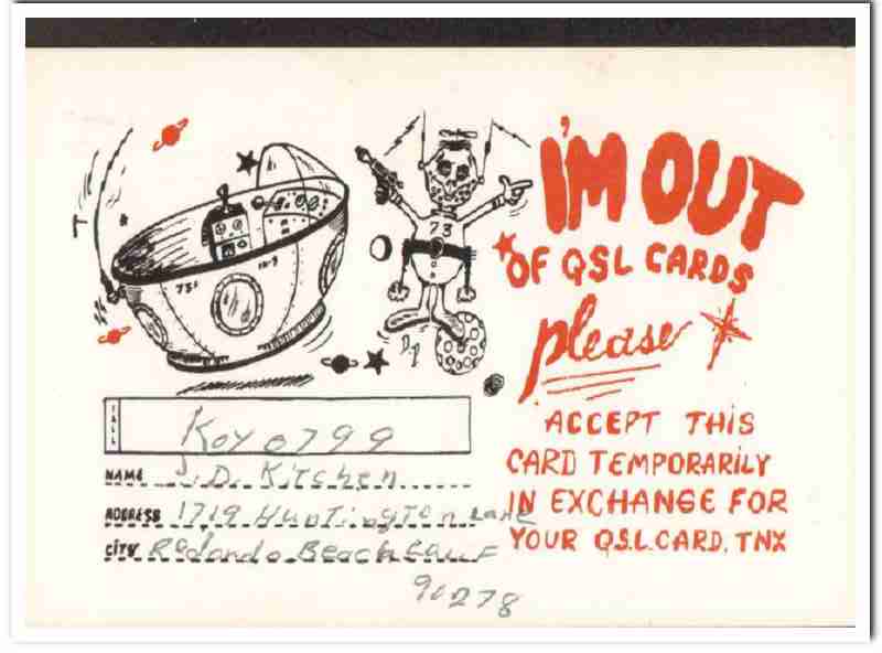 KOY-0799 J D Kitchen Redondo Beach CA 1960s Vintage Postcard CB QSL 2