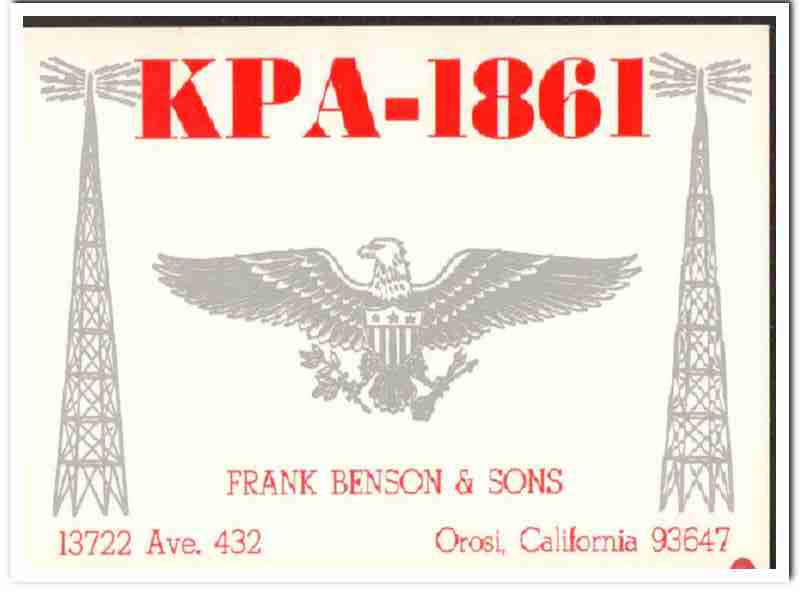 KPA-1861 Frank Benson Orosi CA 1960s Vintage Postcard CB QSL Card