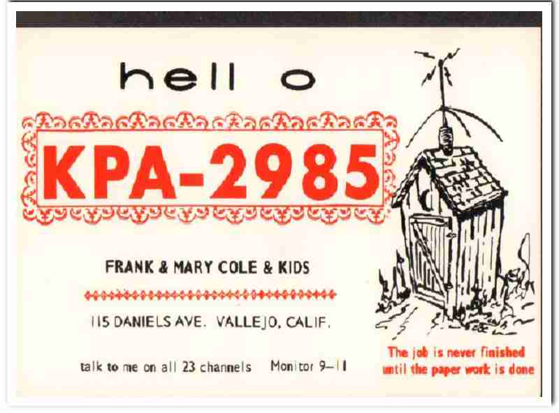 KPA-2985 Frank Cole Vallejo CA 1960s Vintage Postcard CB QSL Card