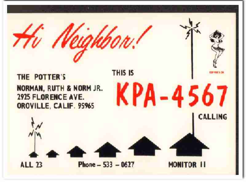 KPA-4567 Norman Potter Oroville CA 1960s Vintage Postcard CB QSL