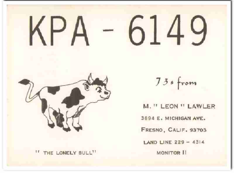 KPA-6149 M Leon Lawler Fresno CA 1960s Vintage Postcard CB QSL Card