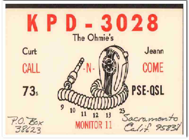 KPD-3028 Curt Ohmie Sacramento CA 1960s Vintage Postcard CB QSL 2