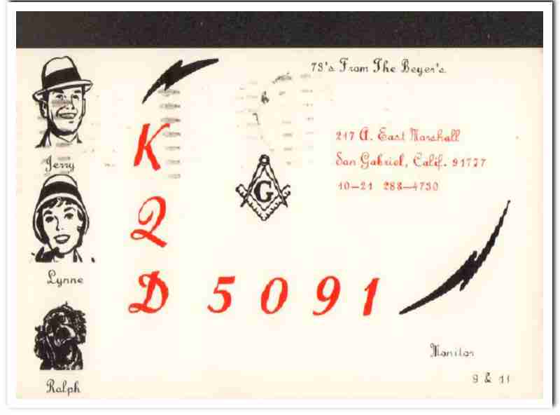 KQD-5091 Jerry Beyer San Gabriel CA 1960s Vintage Postcard CB QSL 2