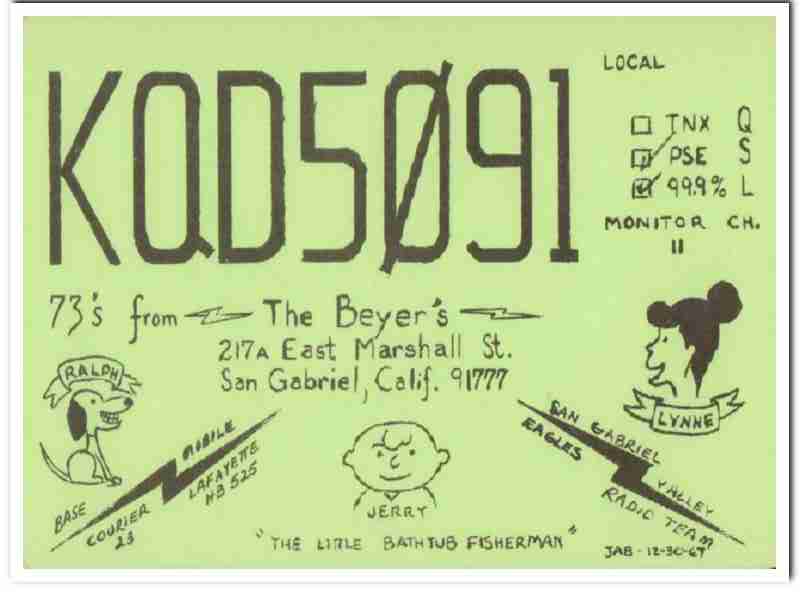 KQD-5091 Jerry Beyer San Gabriel CA 1960s Vintage Postcard CB QSL 2