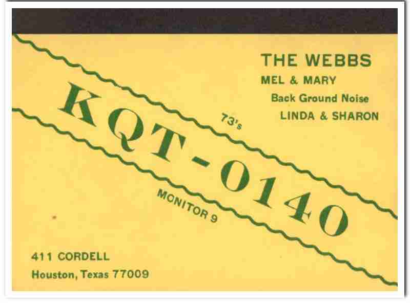KQT-0140 Mel Webb Houston Texas 1960s Vintage Postcard CB QSL Card