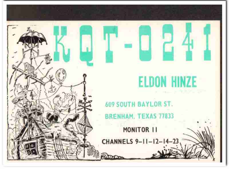 KQT-0241 Eldon Hinze Brenham Texas 1960s Vintage Postcard CB QSL Card