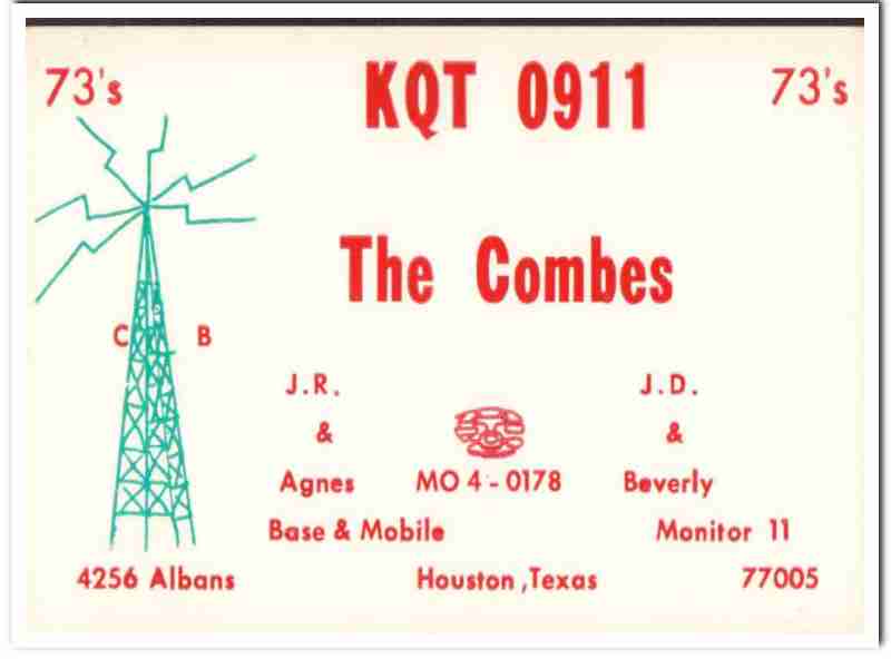 KQT-0911 JR JD Combes Houston Texas 1960s Vintage Postcard CB QSL Card