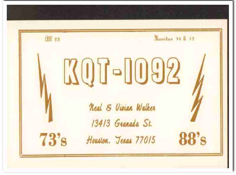 KQT-1092 Neal Walker Houston Texas 1960s Vintage Postcard CB QSL Card