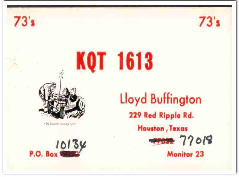 KQT-1613 Lloyd Buffington Houston Texas 1960s Vintage Postcard CB QSL