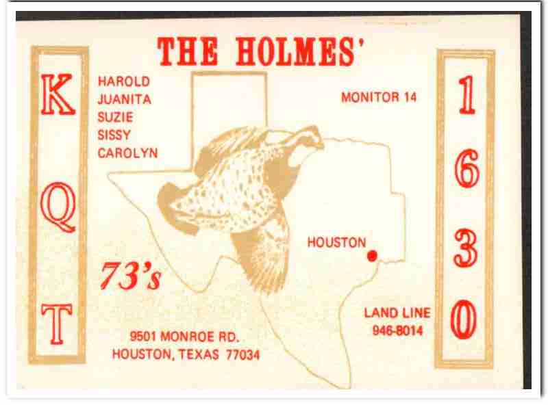 KQT-1630 Harold Holmes Houston Texas 1960s Vintage Postcard CB QSL