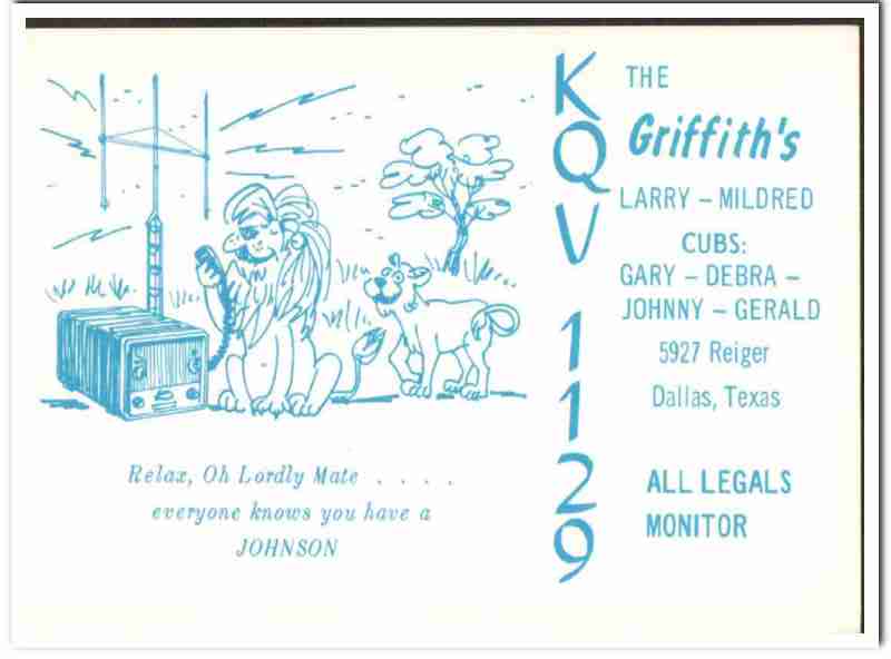 KQV-1129 Larry Griffith Dallas Texas 1960s Vintage Postcard CB QSL
