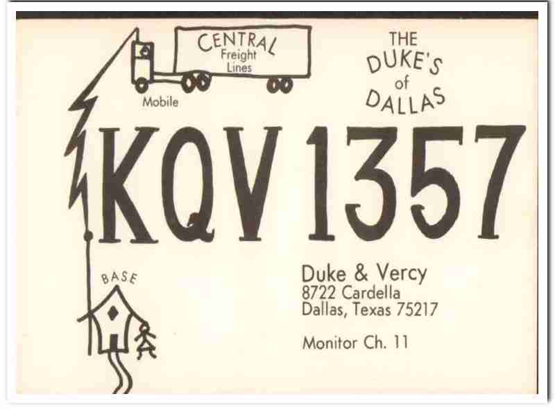 KQV-1357 Vercy Duke Dallas Texas 1960s Vintage Postcard CB QSL Card