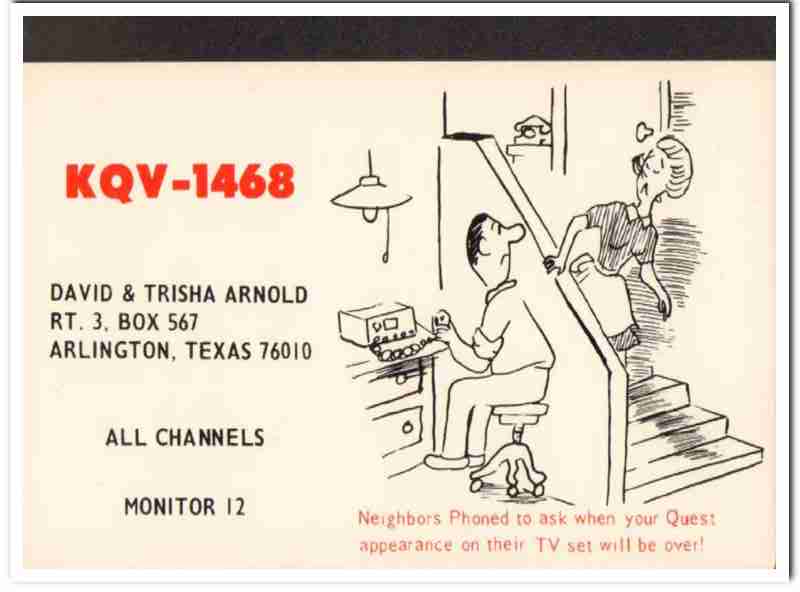 KQV-1468 David Arnold Arlington Texas 1960s Vintage Postcard CB QSL