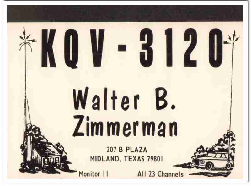 KQV-3120 Walter Zimmerman Midland Texas 1960s Vintage Postcard CB QSL