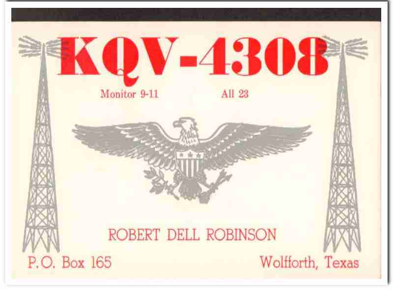 KQV-4308 Robert Robinson Wolfforth Texas 1960s Vintage Postcard CB QSL