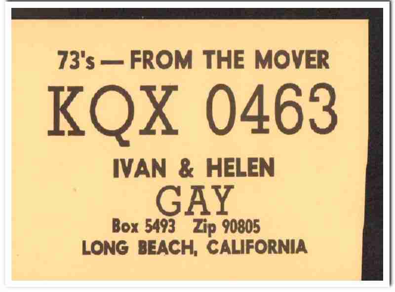 KQX-0463 Ivan Gay Long Beach CA 1960s Vintage Postcard CB QSL Card