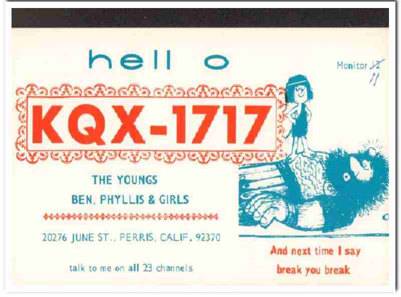 KQX-1717 Ben Young Perris CA 1960s Vintage Postcard CB QSL Card