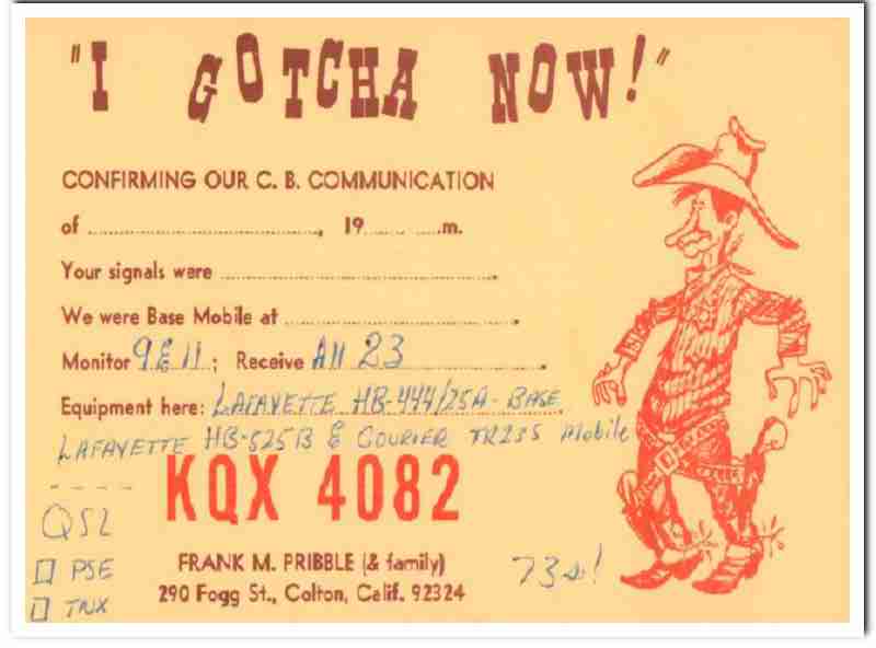 KQX-4082 Frank Pribble Colton CA 1960s Vintage Postcard CB QSL Card