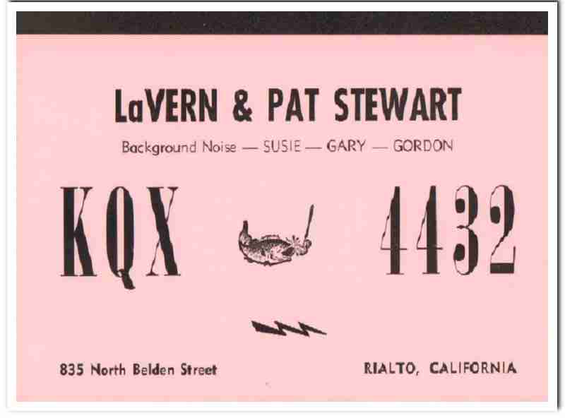 KQX-4432 Pat Stewart Rialto CA 1960s Vintage Postcard CB QSL Card 1