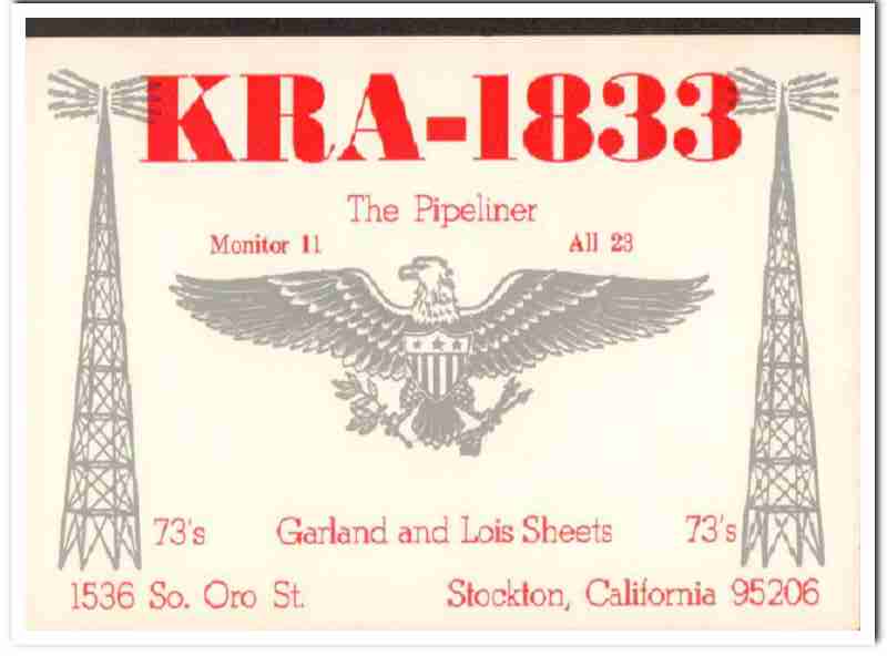 KRA-1833 Garland Sheets Stockton CA 1960s Vintage Postcard CB QSL 2