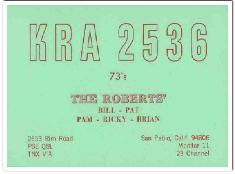 KRA-2536 Bill Roberts San Pablo CA 1960s Vintage Postcard CB QSL 3