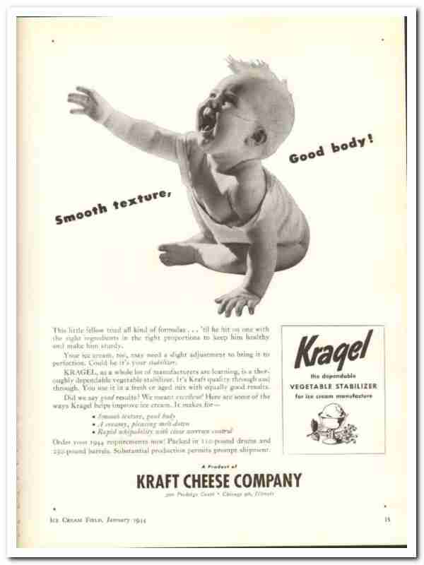 Kraft Cheese Company 1944 vintage ad ice cream Kragel smooth texture