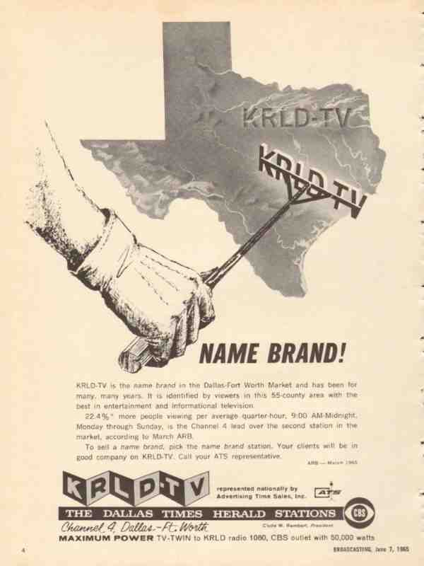 krld tv 1965 dallas ft worth tx channel 4 name brand vintage ad
