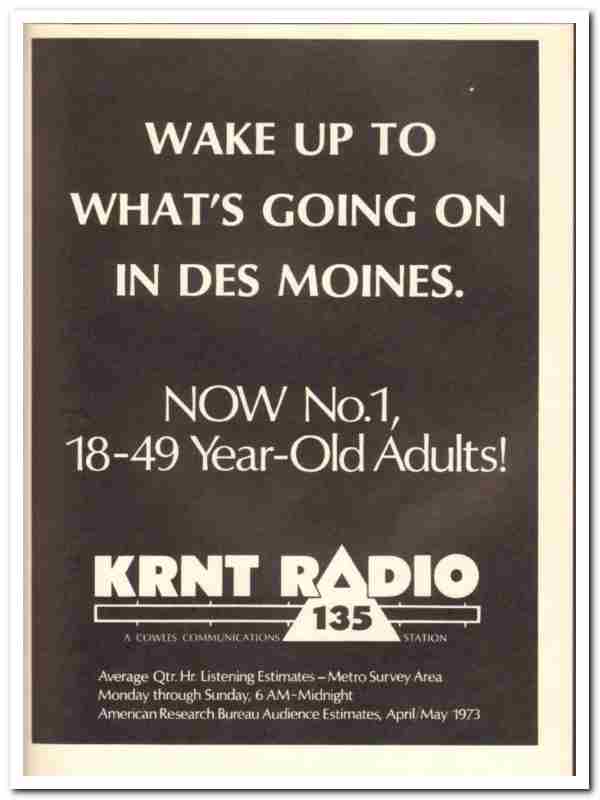 krnt radio 1973 des moines ia cowles communications station vintage ad