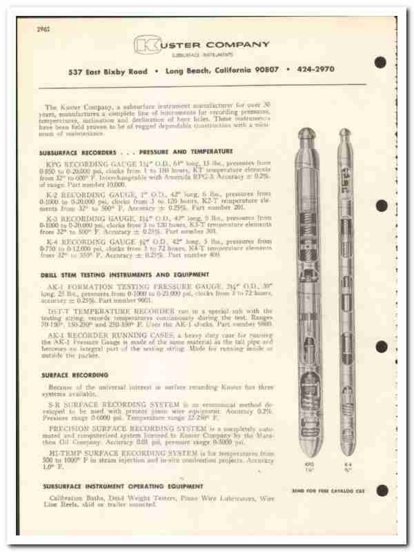 Original 1967 Oil and Gas trade vintage catalog for the KUSTER COMPANY. Main office and plant was located at 537 East Bixby Road, Long Beach, CA.
