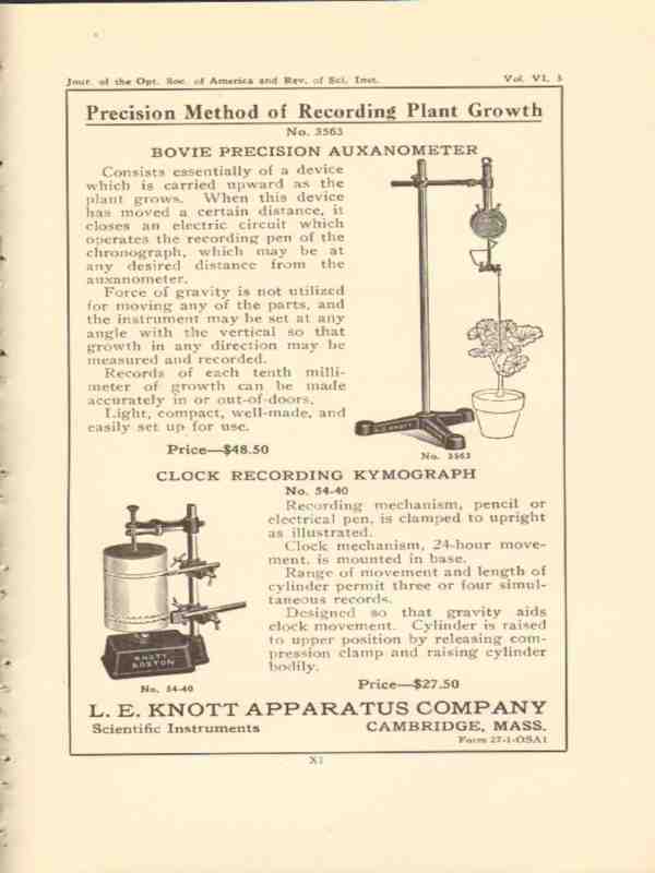 l e knott apparatus company 1922 precision auxanometer vintage ad