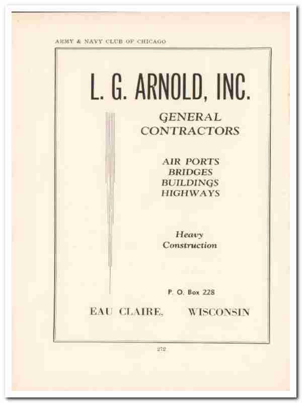 Original WW2 wartime vintage ad for L. G. ARNOLD, INC. Heavy construction, general contractors for air ports, bridges, buildings, highways.
