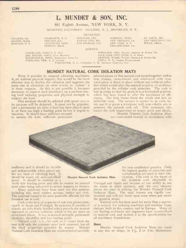 L Mundet Son Inc 1931 Vintage Catalog Cork Vibration Isolation Mats